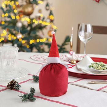 Rode Fluwelen Kerstmuts Decoratieve Trekkoord Traktatie Zakjes Kerst Snoepzak Voor Kerstfeest Gunsten Opslag